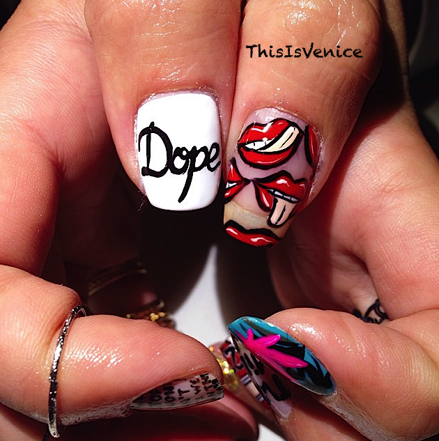 I just became thy biggest ,Miley Cyrus fan after LA artists’ –ThisIsVenice created these wavy claws. If you look closely at each finger nail, you can see a claw design for the entire evolution of the NEW, Miley!!! Ok, SOLD! Twerk, Miley Twerk’.