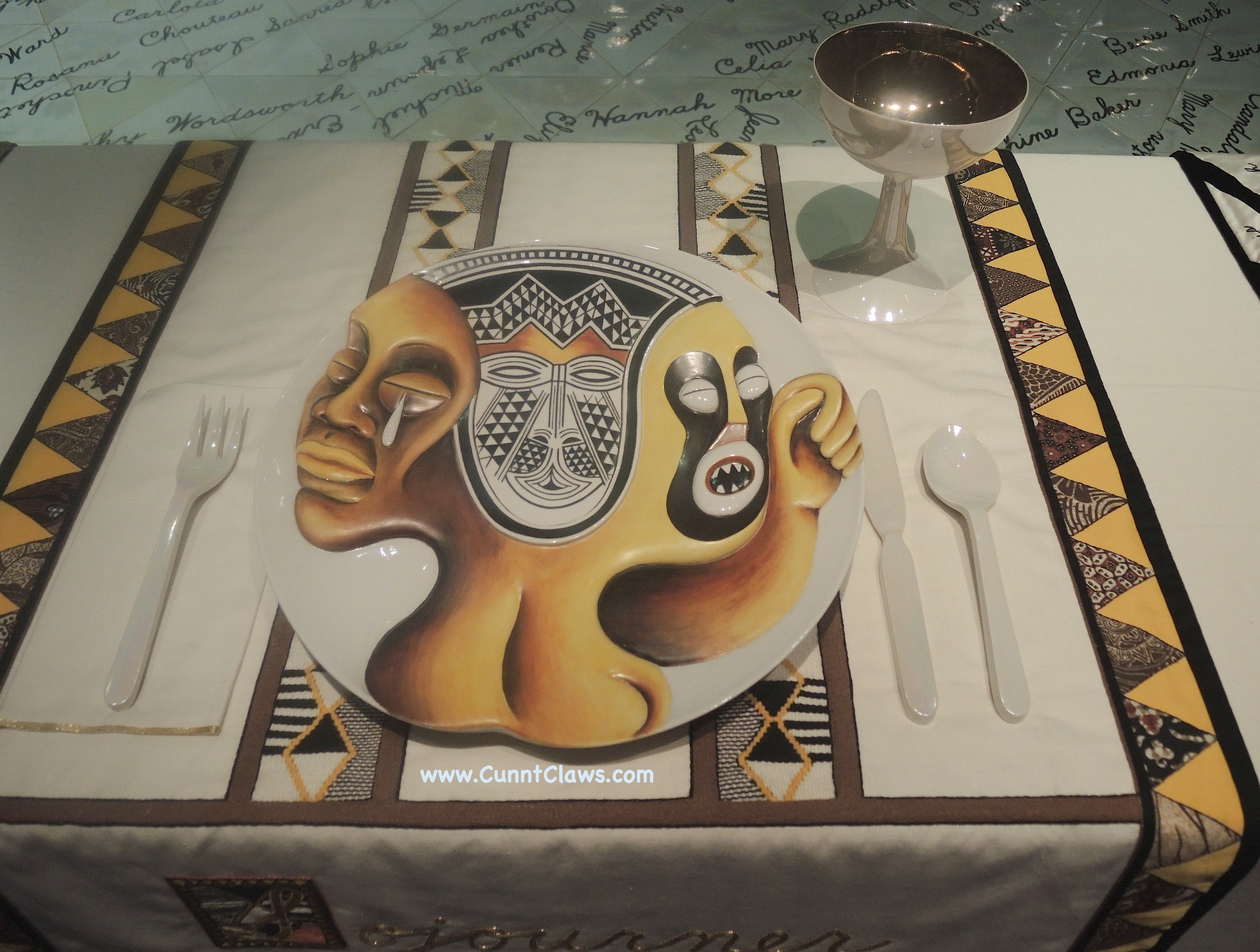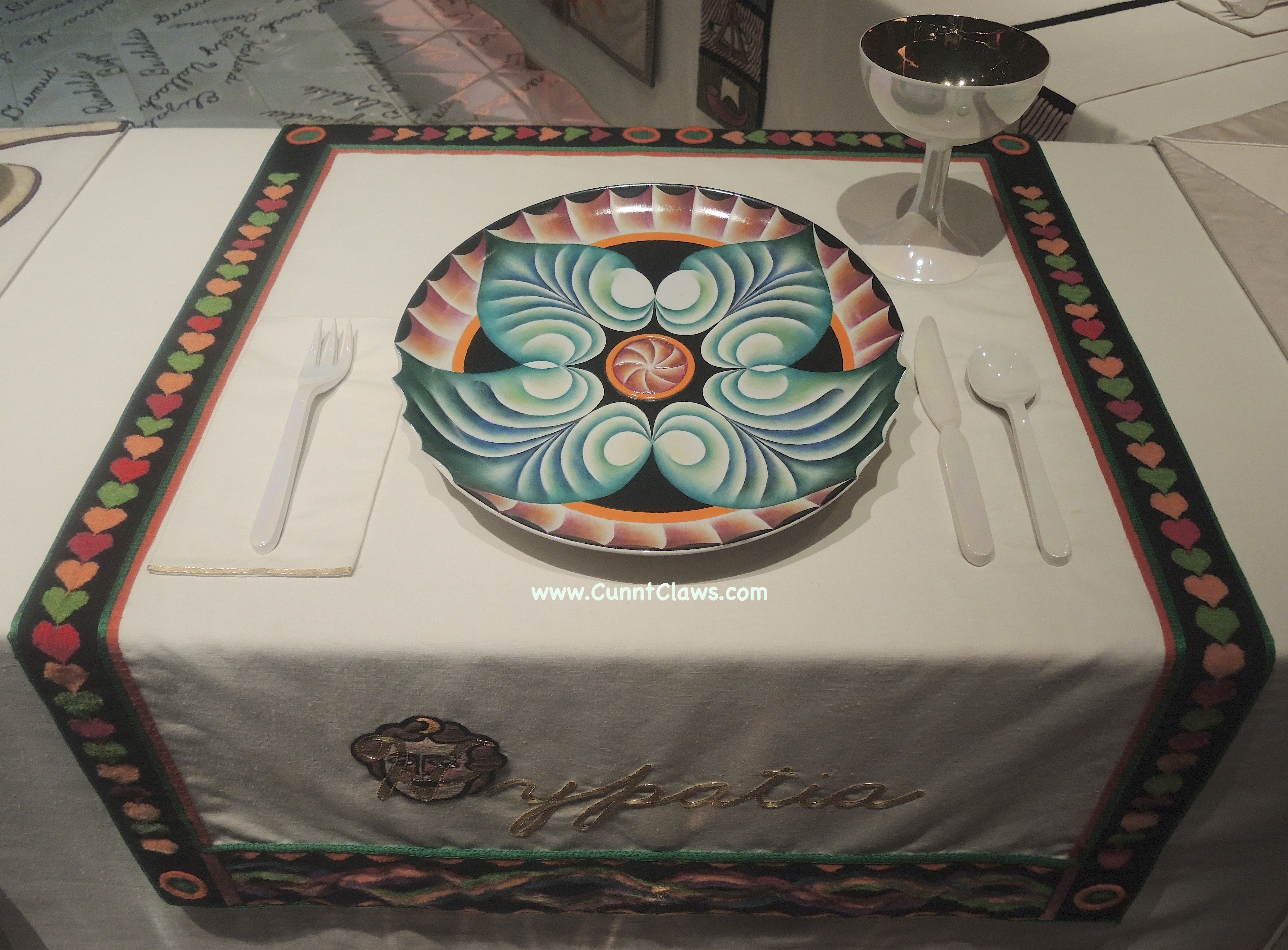 [Surrrrre, you can sit with us!!!!!!] Welcome to, “The Dinner Party” nail-art style! Women’s feminist, Judy Chicago is known for being an artist/author who publish ten books in her years of contributions to society. She is also the first to explore feminist art and art education in the early 1970’s. Located in the prominent, Brooklyn Museum: The Dinner Party is one of Judy’s main works which is admired, where each plate on the dinner table, pays tributes to a significant women figure in history. To highlights some of America best art works, The Dinner Party convey women from the Western civilization who contributed to a unique skill (and more); Ceramics, needlework, embroidery, and china painting.