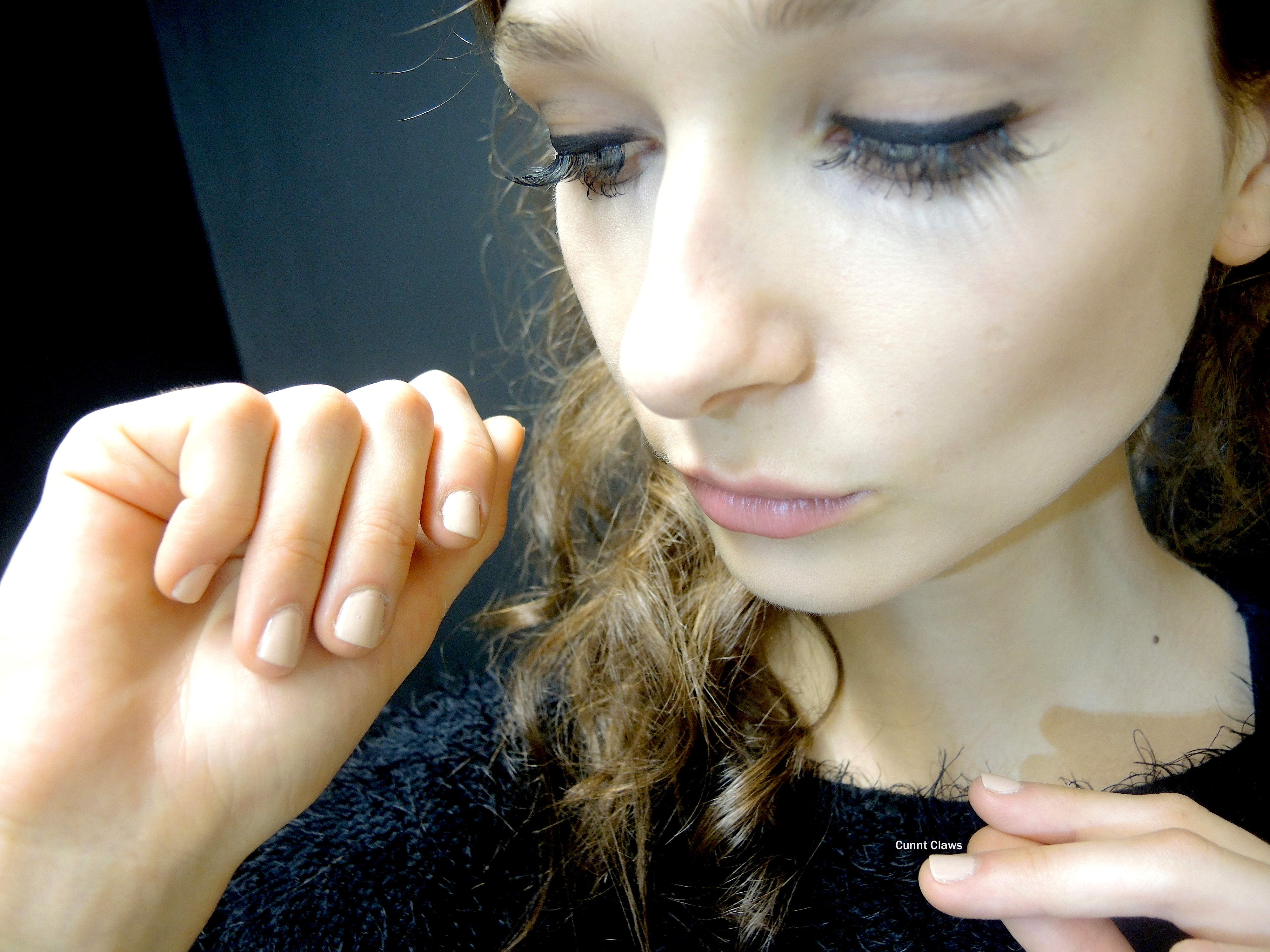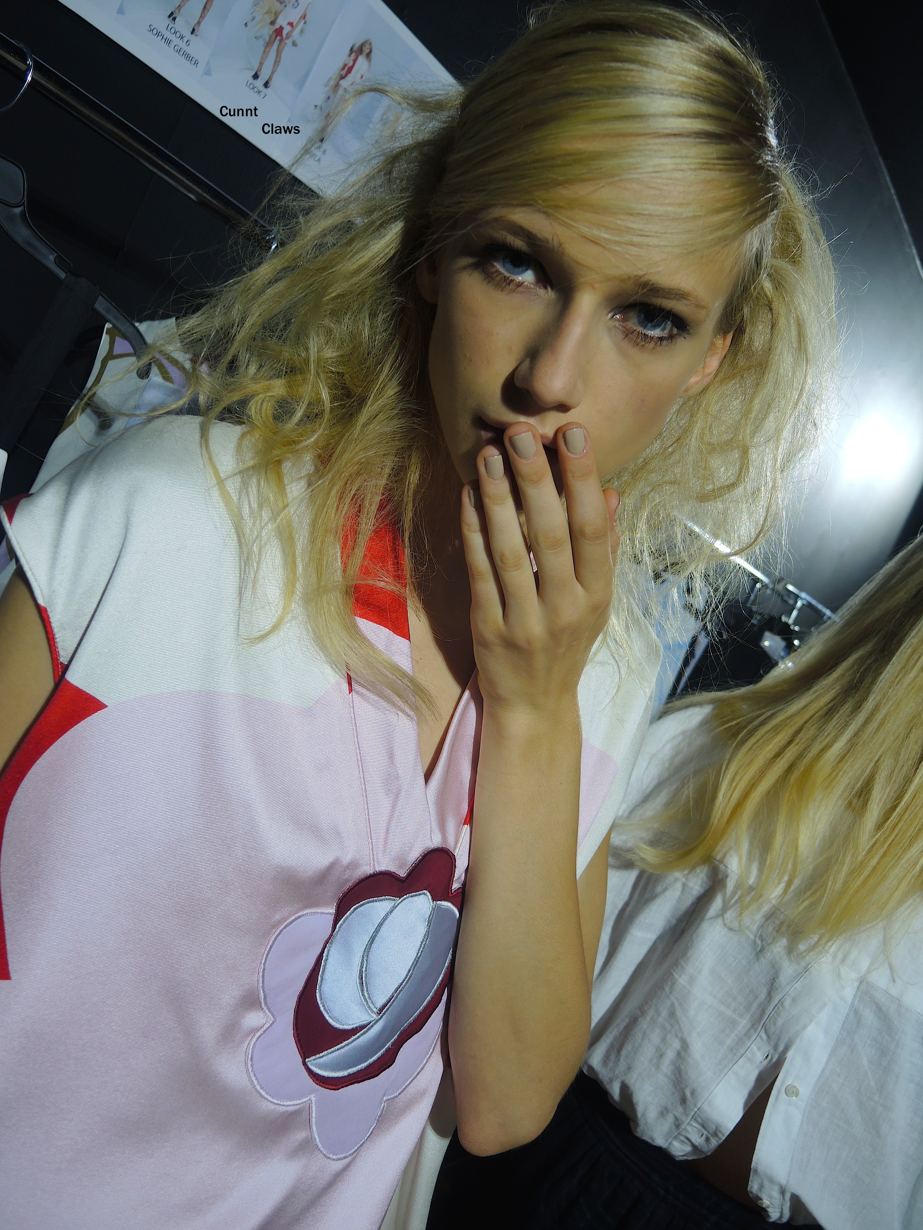 rowley68 copy[Above-Below] Face & Nail look: Models wore exaggerated eyelashes and nude nails…MOD! MOD! MOD!rowley54