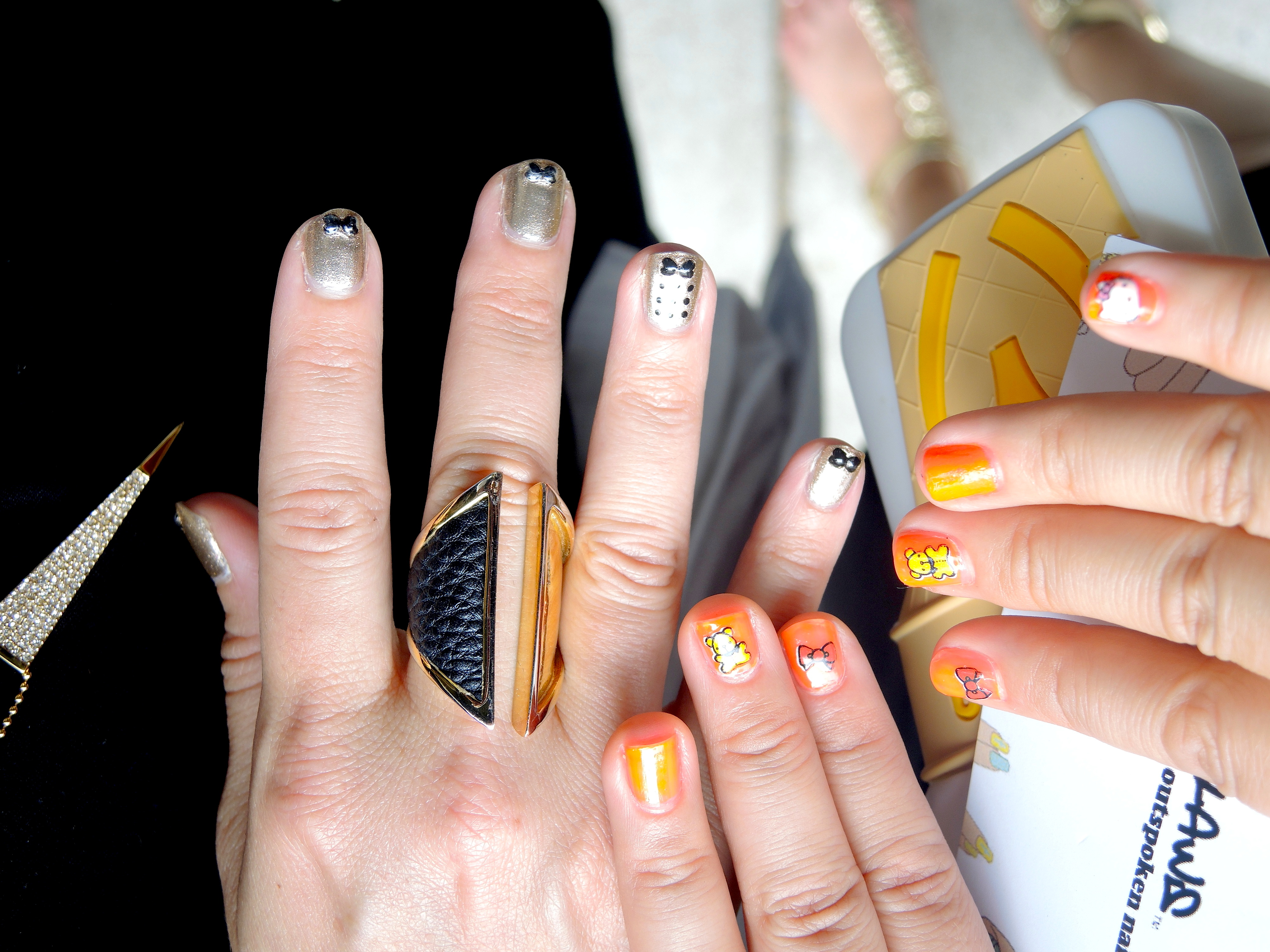 After the show, there were additional nail action to snap! Good to know people are embracing art on the nails: Here is a few fingers that caught my attention at , Cynthia Rowley presentation show: