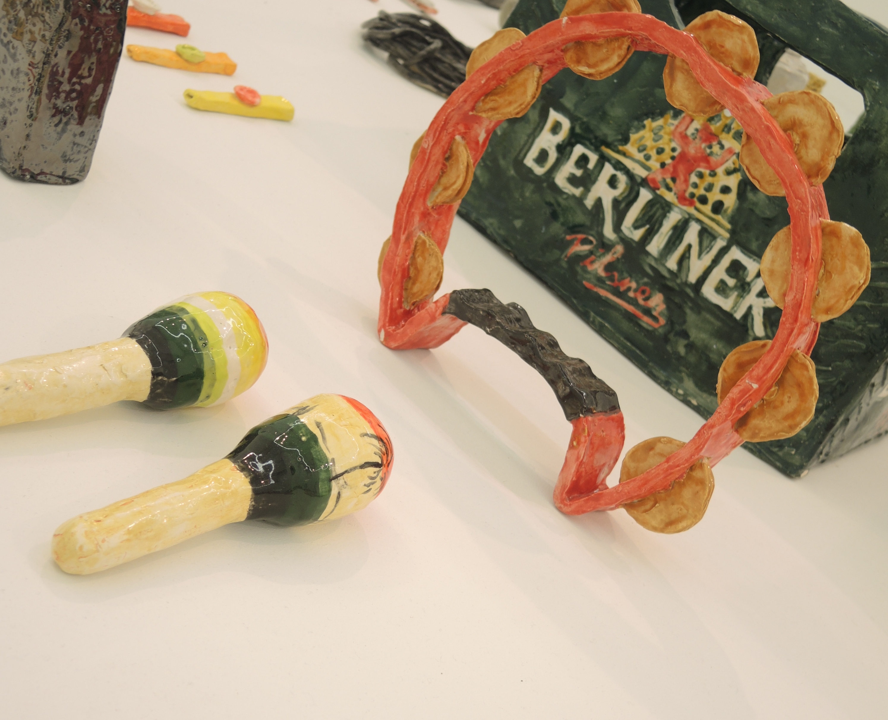 When I walked into, The Hole I was astonished by voluminous space, but in the back there is a room full of everyday life-like items displayed on the floor. Current minoring in, Anthropology [The study of humans], I was drawn to the sculptured artifacts of culture objects made by, Rose Eken. Her goal is to bring awareness to a lost culture and her arrangements are all placed systematically in favor of that: