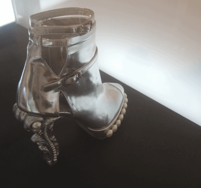 [Above] Revival and Reinterpretation: Reinventing the past so it’s still significant to today’s current culture! The revival and reinterpretation section will be interesting to individual who use past inspiration of any sort to create art. This these type of heels are linked to luxury. In the 16 century, men wore platform and elevated shoes while attending social events to display their wealth and status. Leading all the way up to the 1970’s, men were still caught in social spots like, Studio 54 getting down in their high level platforms! Material like silks and woods are use to recreate each shoe.