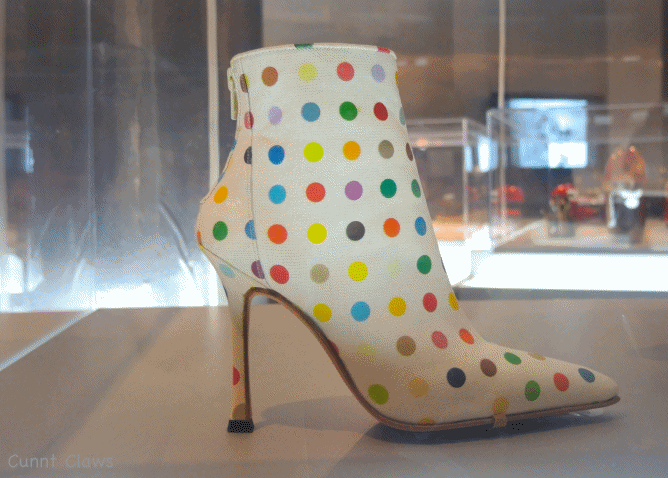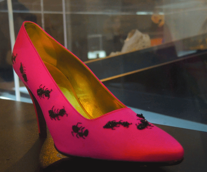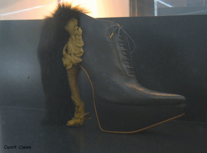 [Above] Metamorphosis: The boss…the high-class tramp…the showstopper… or the androgynous two timer are all of the many personalities the wearer can transform into in the metamorphosis section! Foot becomes more proportionate to the rest of the entire body, while stimulating the legs to appear erotic. According to Brooklyn Museum, “The heels embellished with feathers, fur, or animal skin conjure mythological hybrids, hunting trophies, or garments worn by prehistoric and contemporary people to perform transformational spiritual rituals…dreamlike or unexpected surrealism ” – woah!!! Spiritual rituals? Yes! Your shoes can whip up some serious charms…the transformation is real!
