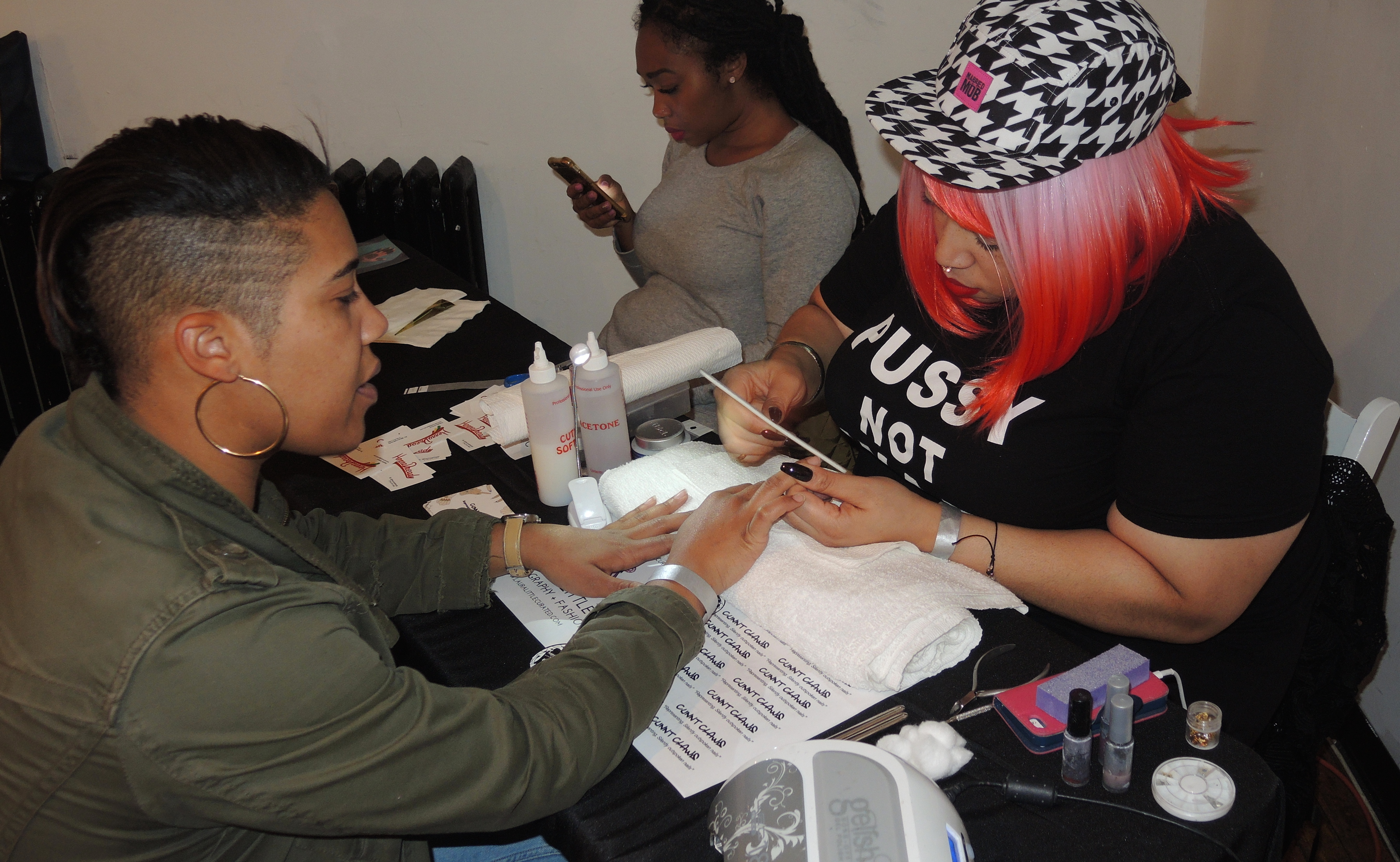 In the nail art section, guest enjoy the allure of watching nail-art on a projector, while blogger, Nikiba Marshall and freelance Nail Artist, Blizzy of Tout Est Bombe merge together to give guest a distinctive experience by showcasing a live visual presentation of nail-art. Guest had the pleasure of watching Toute Est Bombe design nail art concepts inspired by Laura Little’s t-shirt apparel line. Happening next to the nail art booth is, Henna artist Henna Dready! Other eye-catching contributors who participated: Mess Queen, Vena Amoris Jewelry, Ceramicism XOXO , Sosa Knitwear, ChuchuNY and Madly Made: