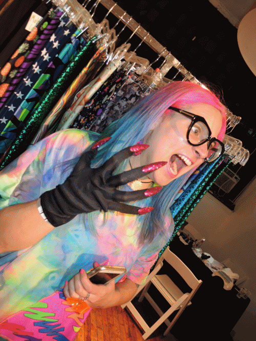 Necole Clark sporting, Pink Shisha “CLAWS” gloves