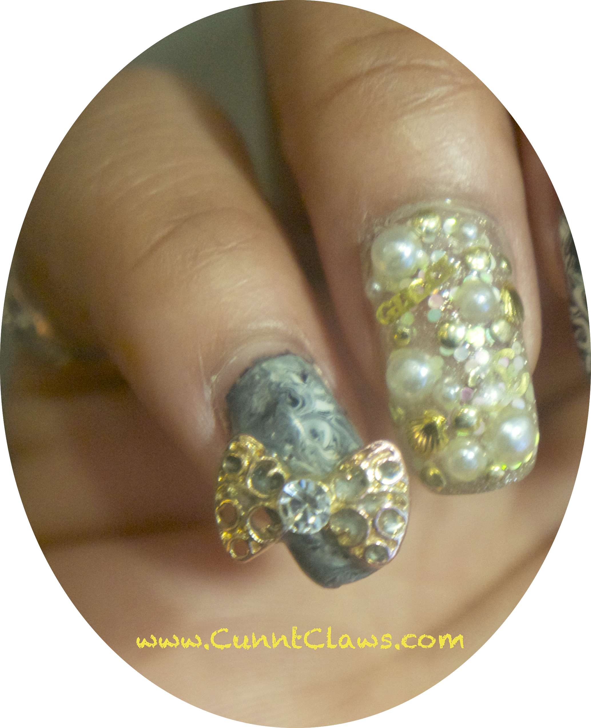 Nail Art Concept: “Under the sea” using 3 dimensional pearls, shells and caviar gems.