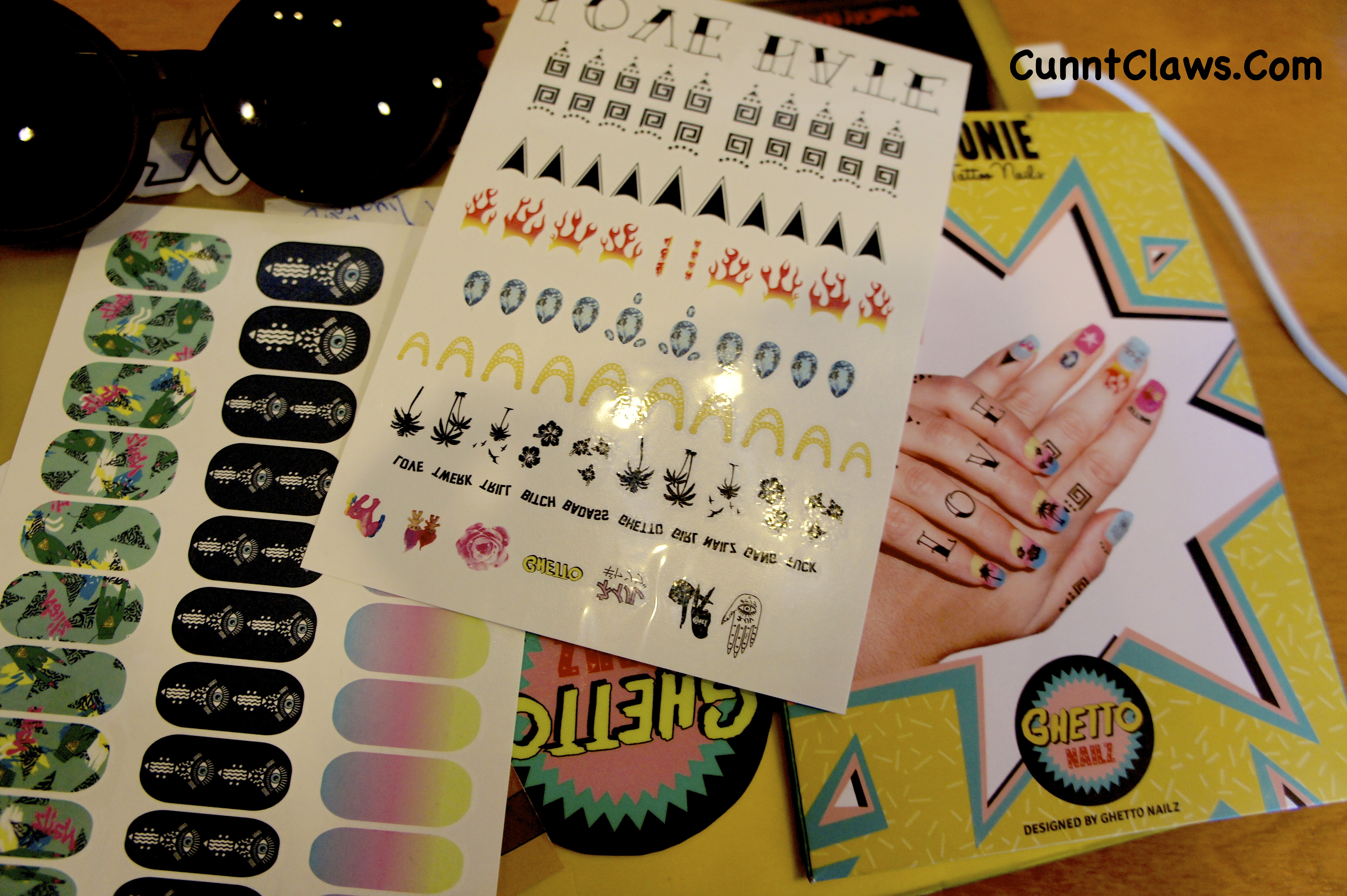 Self-expression is something that we all have, and it some what becomes our social identity. Conversely, embracing our self-identity is a skill, and Cunnt Claws favorite nail-art crew of all time just happens to nail that sector of “self “ very well! From doing my claws in, Spring of 2013- just before launching the, Cunnt Claws website… the almighty nail gods gave me the pleasure of meeting one of Ghetto Nailz ride-or-die member, Jessica for the first time ever (Gosh, was I excited to be receiving some 80’s style nail-art, which to me was new to my ongoing nail-art archive!) Now, within less than a year later, I am so stoked to be sitting side by side with the super cool all female nail crew- Jessica, Luz, and Andrea of Ghetto Nailz, who happen to be visiting the big apple from Madrid (Spain) while doing big things for the Ghetto Nailz brand! Find a seat, and come join in on the conversation with me:
